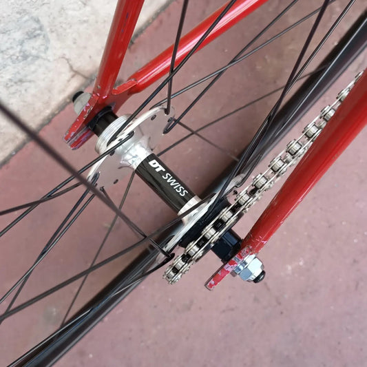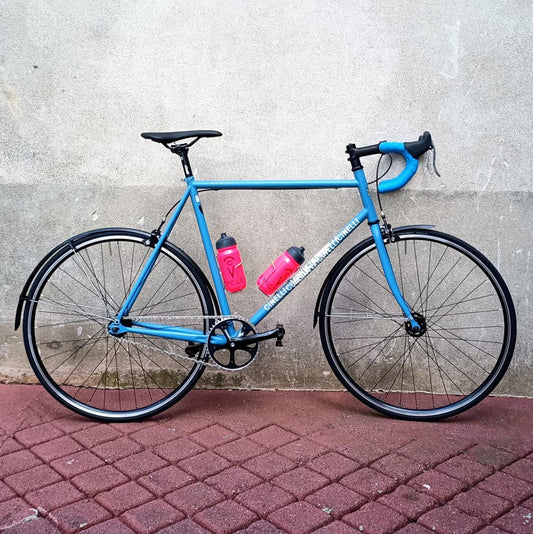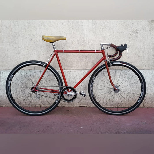 Vélos avec pignon fixe en brake-less (sans frein) pour la piste ou avec freins pour la route, vous l'auriez vu, nous en faisons même en longue distance.